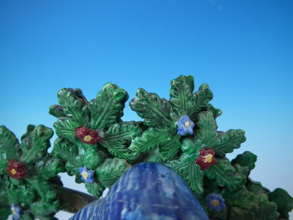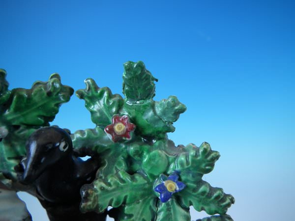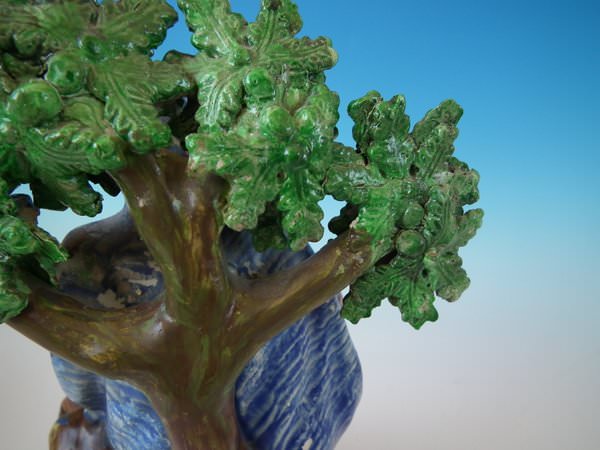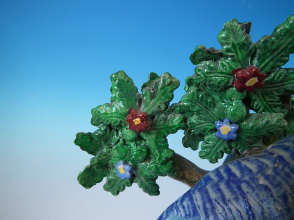 Middle branch and 3 leaves reglued and joins retouched.