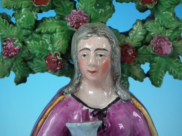 Salt Staffordshire Pottery pearlware bocage figure with a religious theme which features St. John, stood on a circular base.