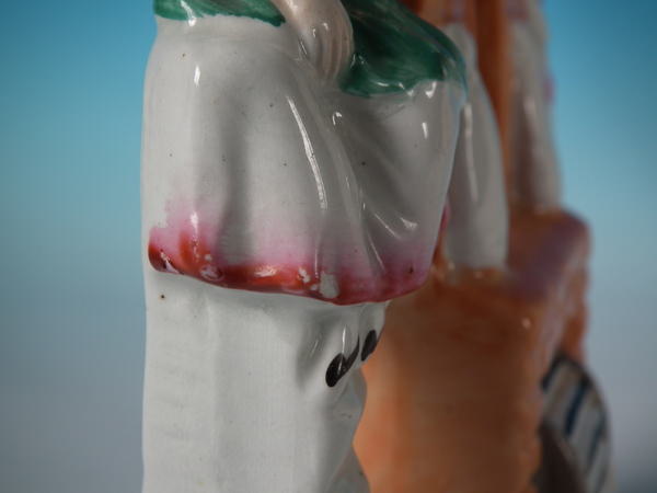 Dull gilt base line and embellishment. Flatback, decorated only to the front.