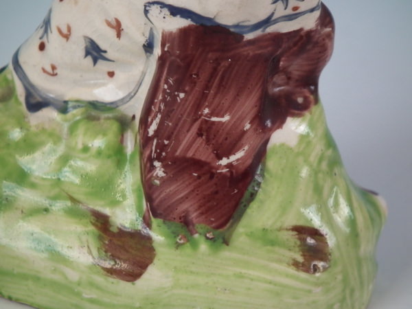 KILN EFFECTS: tiny glaze pops to her shoes and the basket.