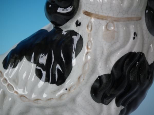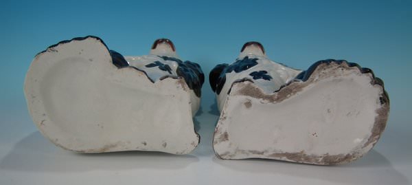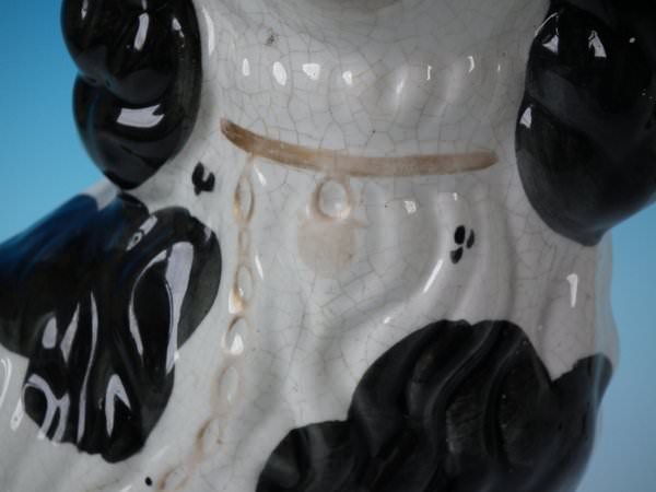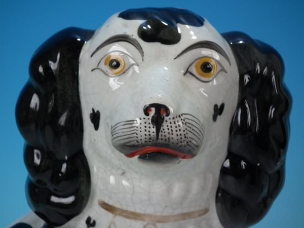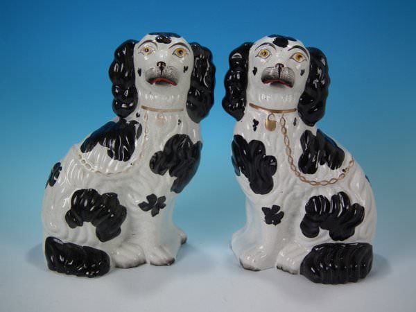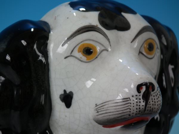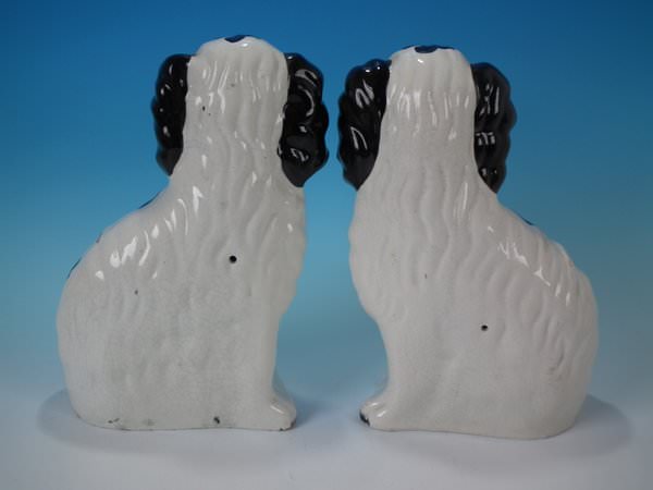 Pair of Staffordshire Pottery figures which feature a spaniel, seated directly on the ground, no base.