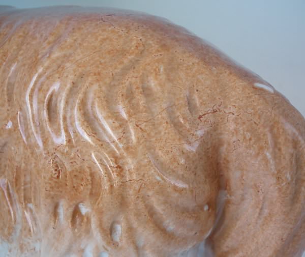 KILN EFFECTS: shrinkage cracks to right front and rear legs.