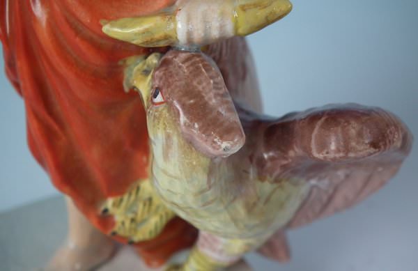 Juno: Generally good. Some paint losses to clothing and peacock.