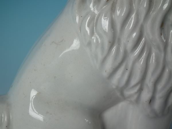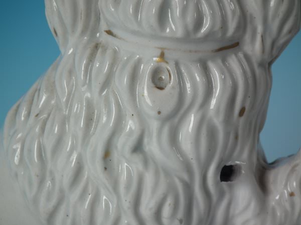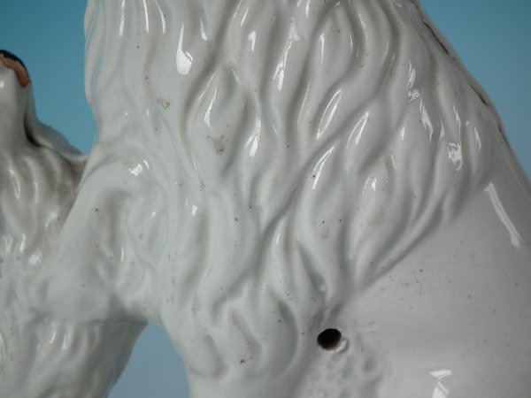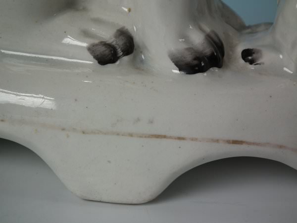 Minor paint loss to dog's muzzle.