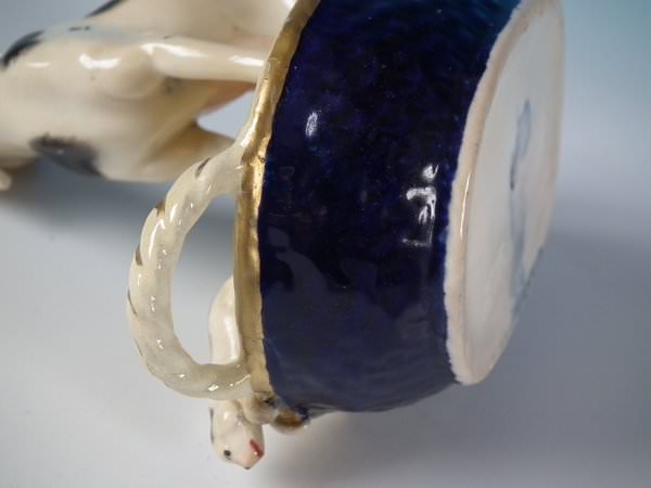 Dull gilt embellishment. Decorated 'in the round' - decoration to front and reverse.