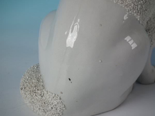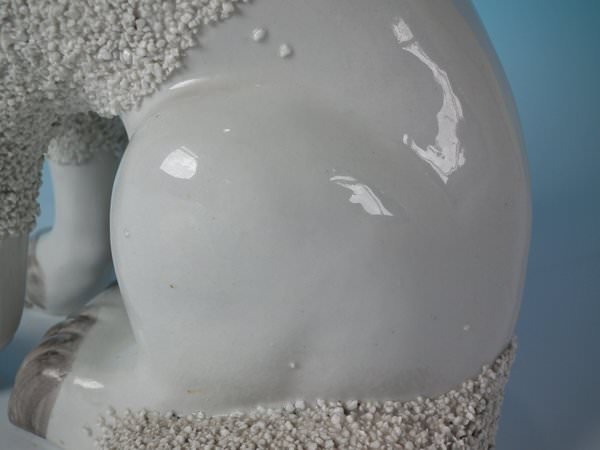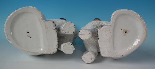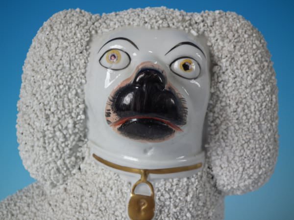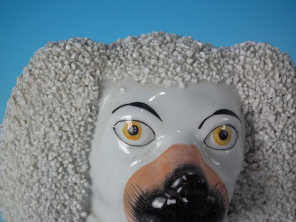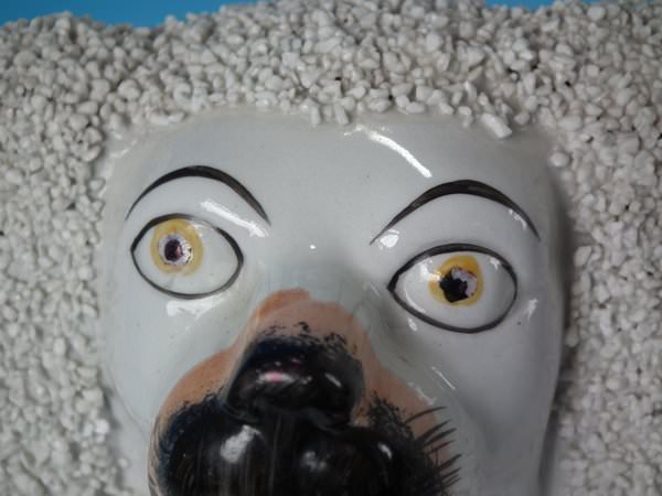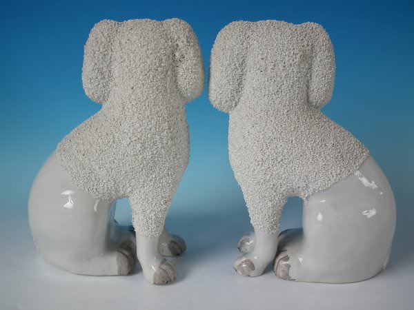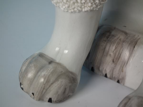 Pair of Staffordshire figures which feature a poodle, seated directly on the ground, no base.