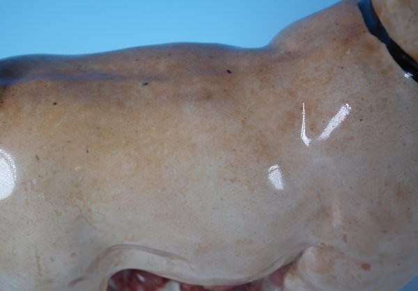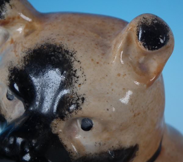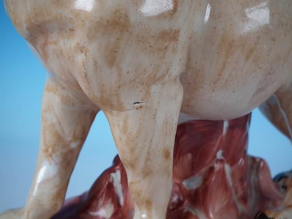Left facing: Good. No restoration. Some small paint losses to left ear, muzzle and upper base.
