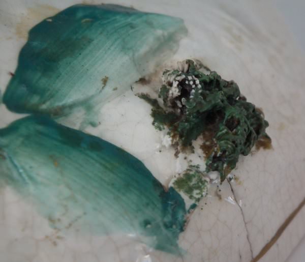a few specks of kiln detritus caught in the glaze.