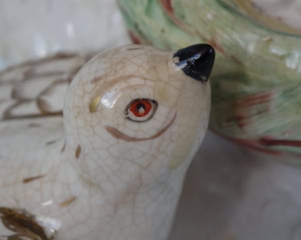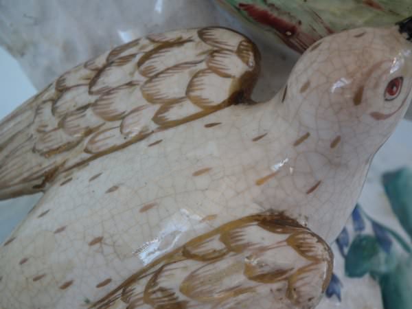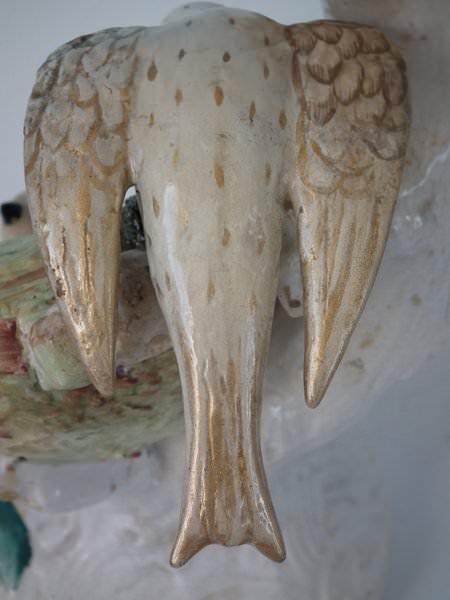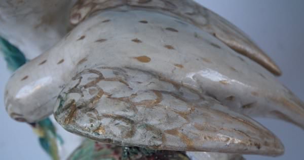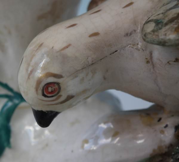 Some paint losses to birds' eyes and beaks,