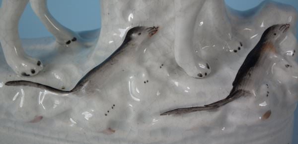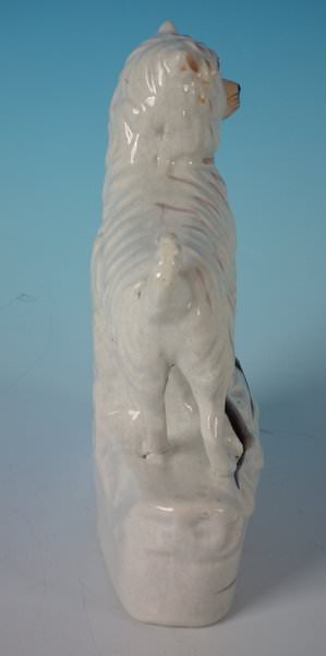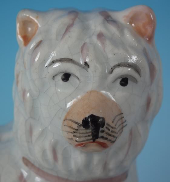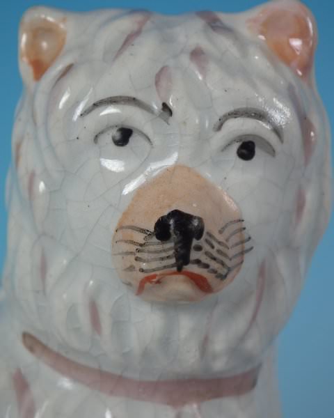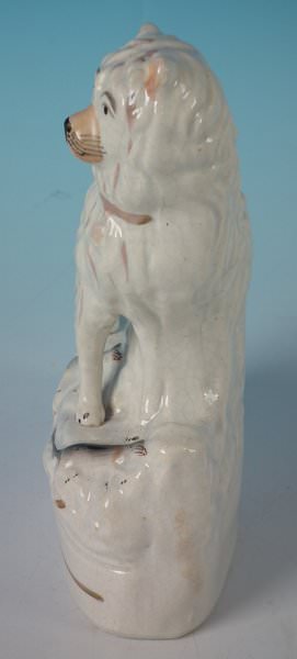 This piece represents Billy the rat catcher, a dog that is said to have killed 100 rats in less than 6 minutes. This was a popular sport amongst the poor during the 1800s. Book reference ,'Victorian Staffordshire Figures 1835-1875' Book 2, by A.& N. Harding, page 228, figure 2809/2810.