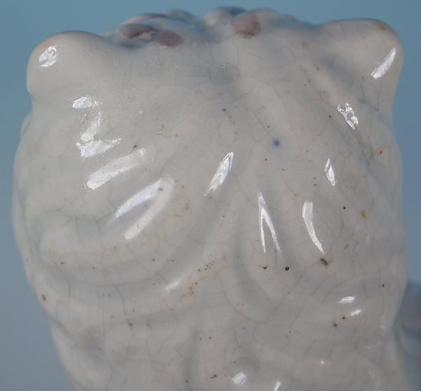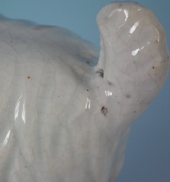 a small piece kiln detritus caught in the glaze to terrier's face;