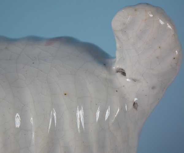 RESTORATION: Stabilised and retouched hairline to terrier's front right leg and shrinkage line to reverse of base.