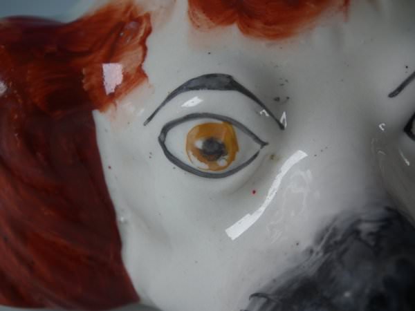 Cover: Generally good. Some paint losses to russet markings, right eye and muzzle.