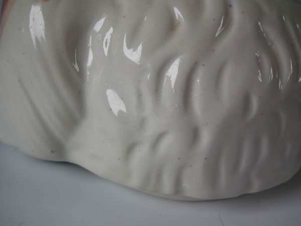 KILN EFFECTS: touch mark to right ear; thin glaze application to muzzle.