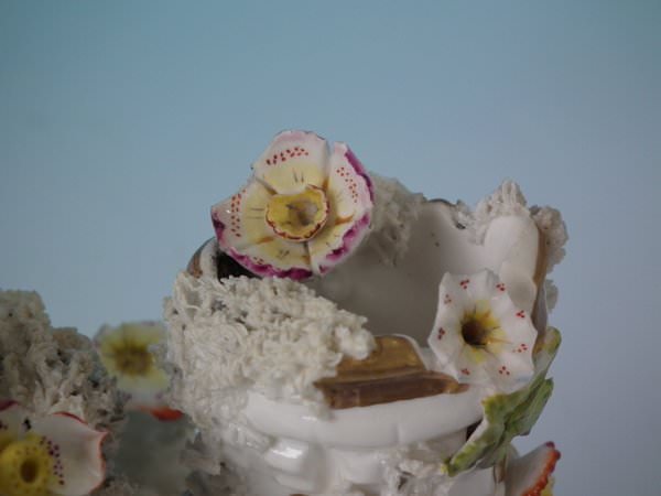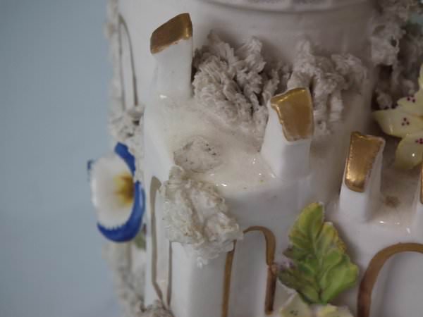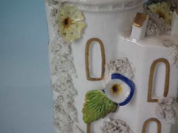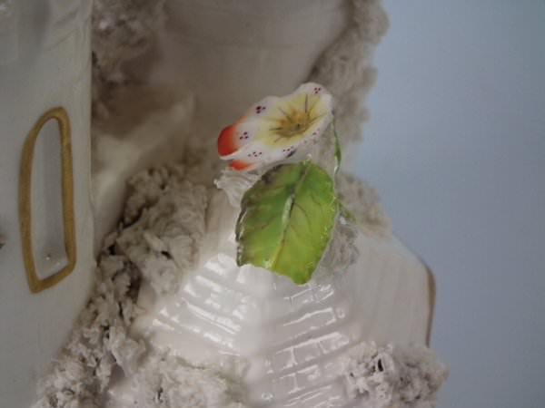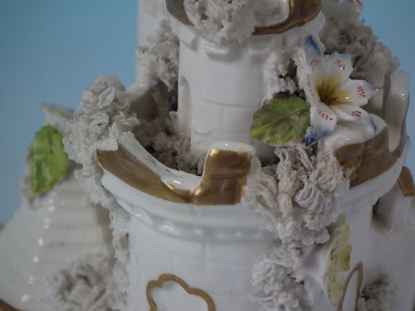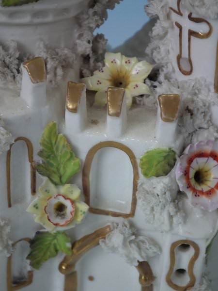 Castle: Generally good. No restoration. Chips to the flower petals and leaves.