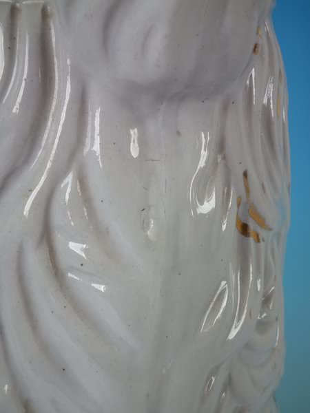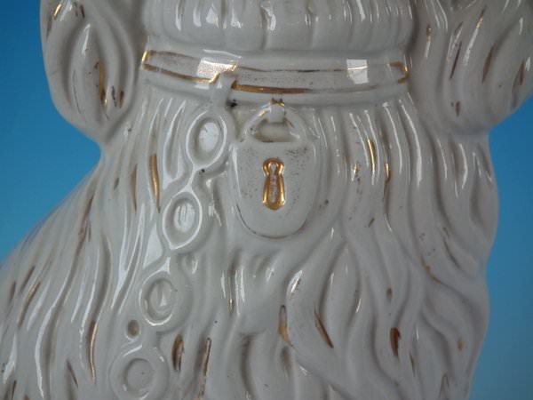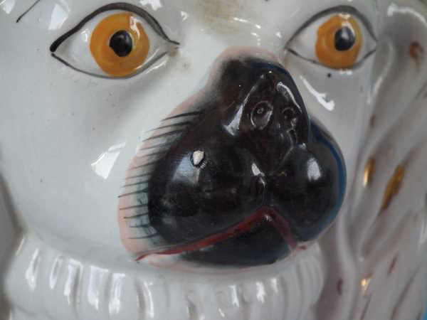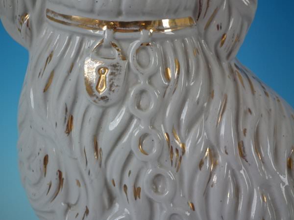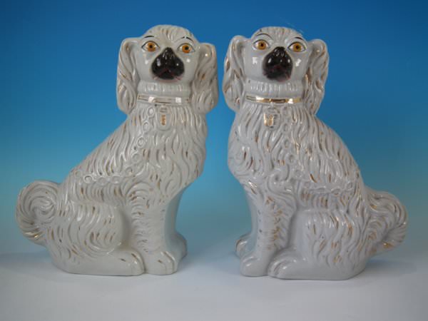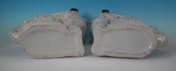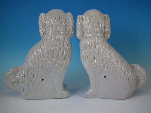 Pair of Staffordshire Pottery dogs which feature a spaniel, seated directly on the ground, no base.