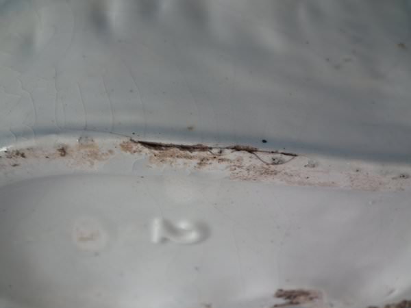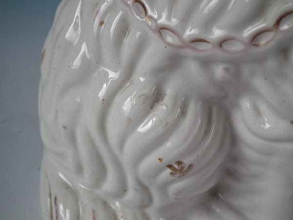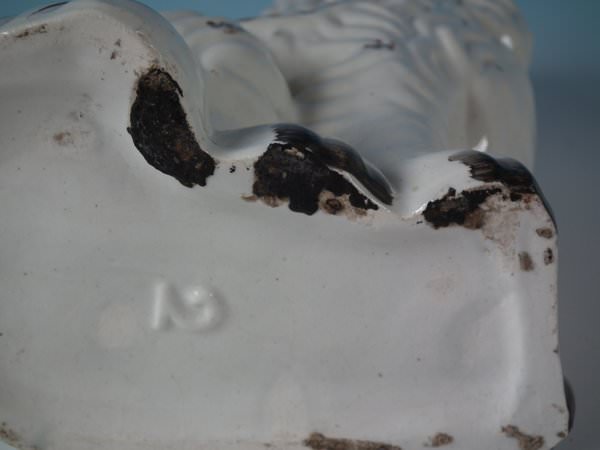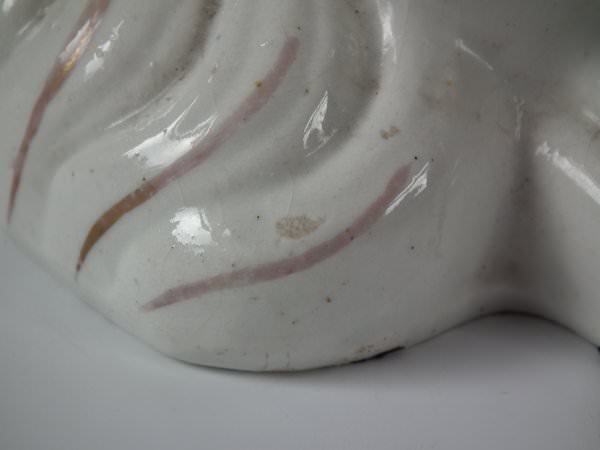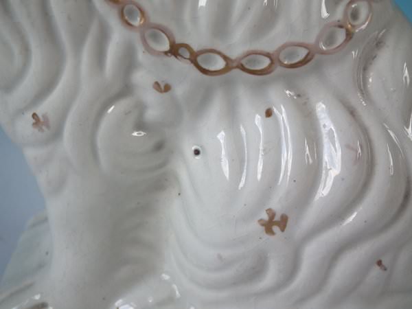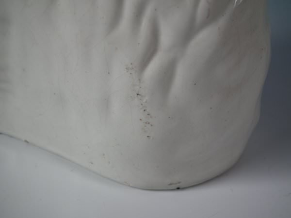 KILN EFFECTS: shrinkage line to top of dog's left ear;