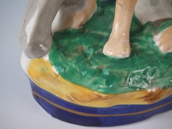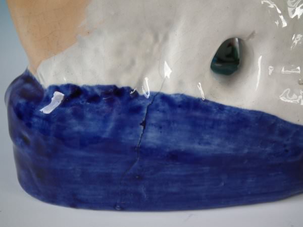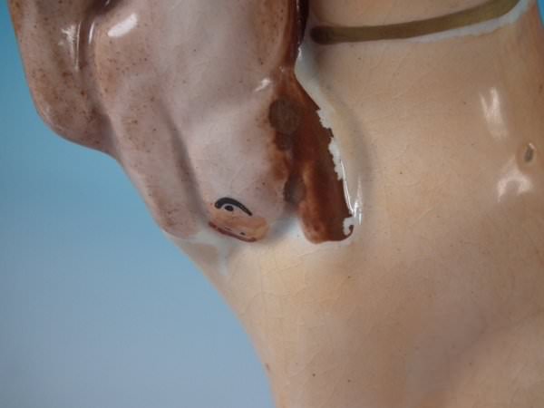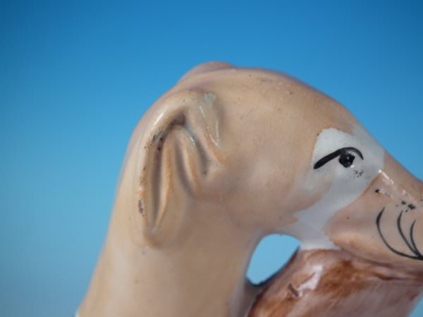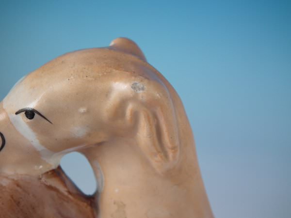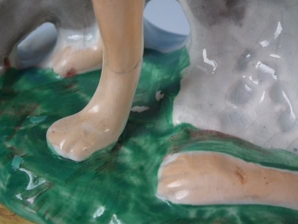 CONDITION: Right facing: Good. Some small flakes to the dog's head and fence panel.