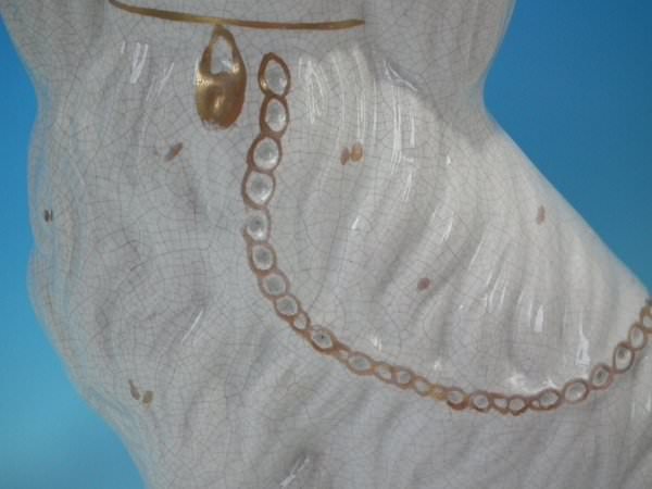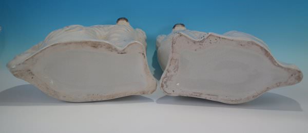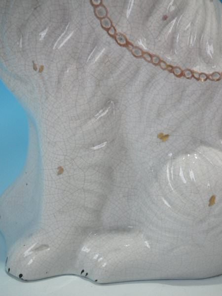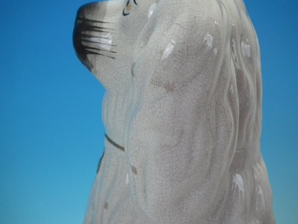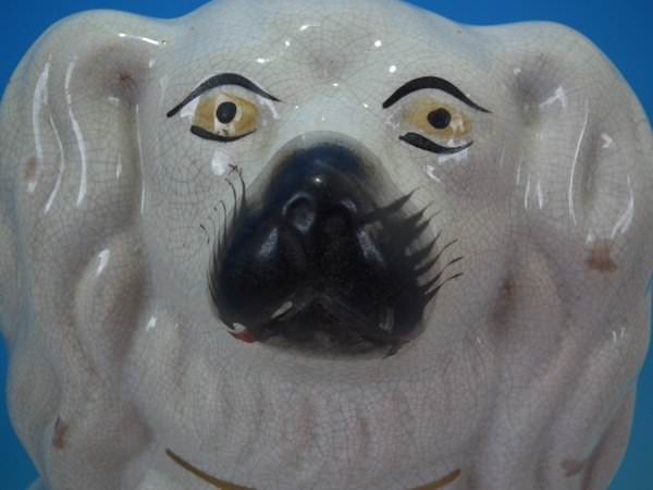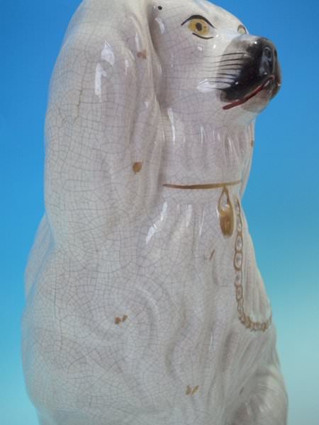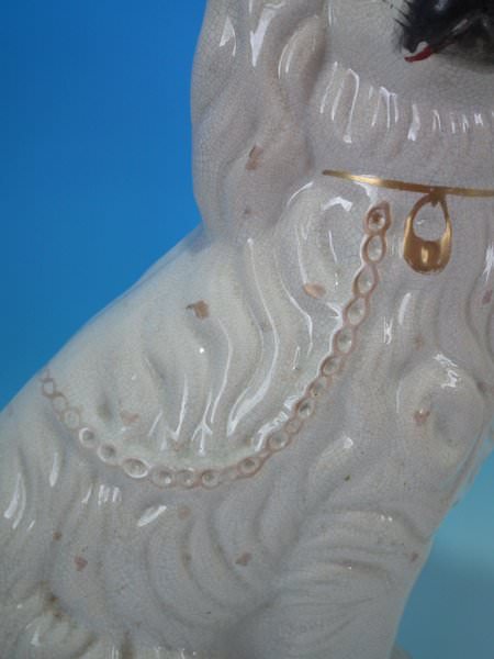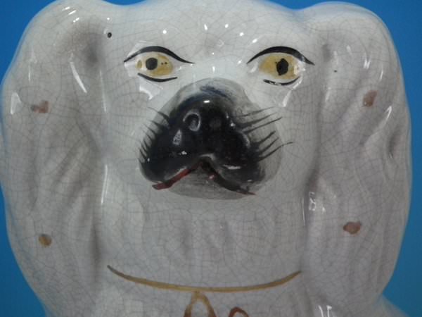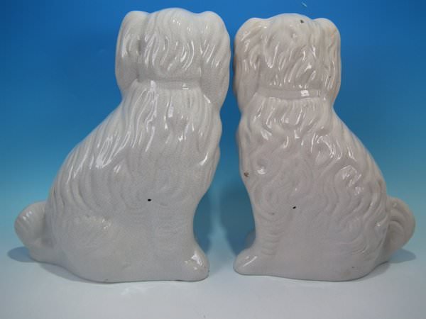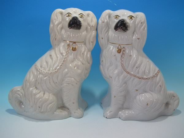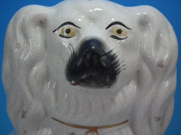 Pair of Staffordshire Pottery figures which feature a spaniel, seated directly on the ground, no base.