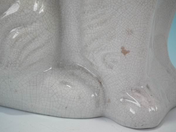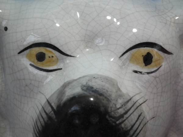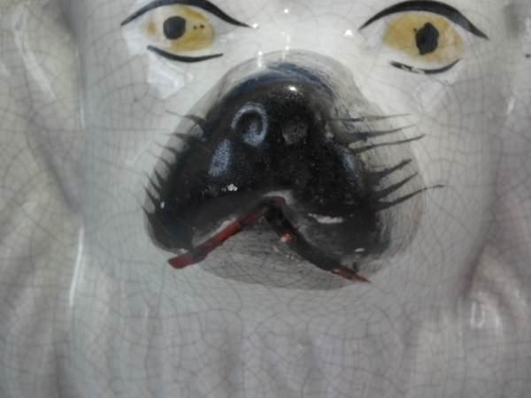 Left facing: Good. No restoration. A few paint losses to muzzle and eyes.
