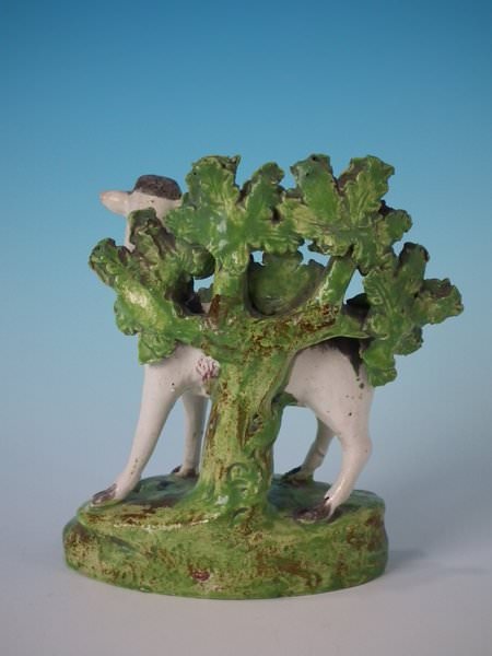 Staffordshire Pottery pearlware bocage figure which features a doe in front of a tree, stood on an oval hollow base.