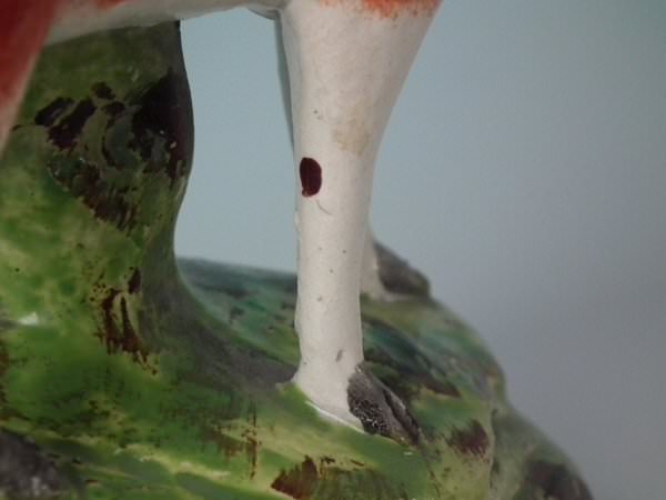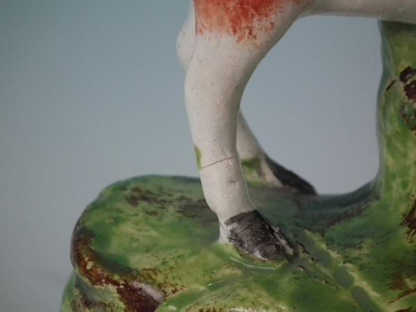 stray coloured glaze to front right leg;