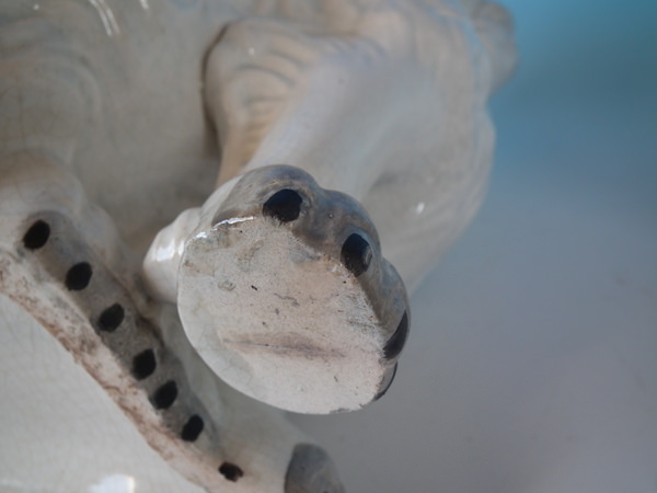 RESTORATION. Stabilised and retouched crack to right front paw.