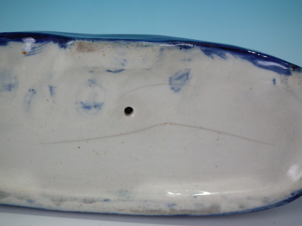 Dull gilt base line and embellishment. Decorated 'in the round' - decoration to front and reverse.