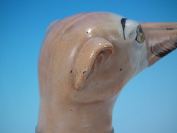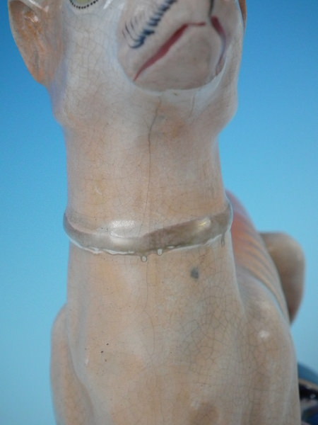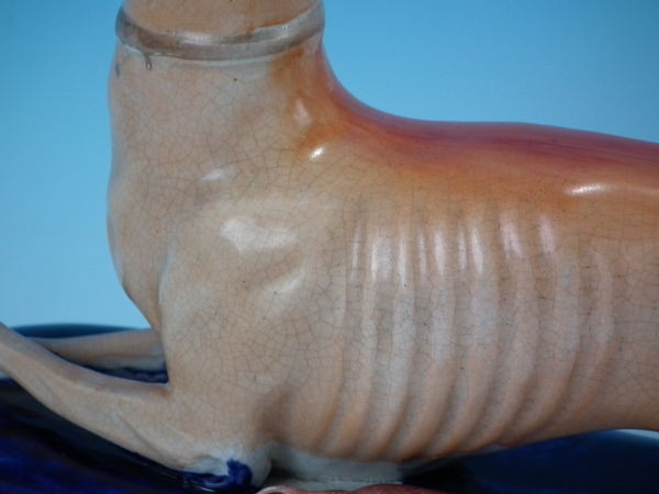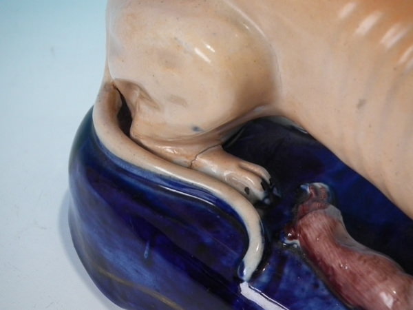 KILN EFFECTS: kiln soot caught in the glaze to the muzzle;
