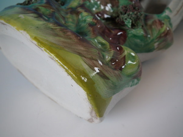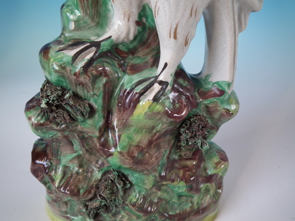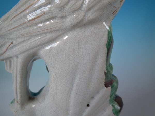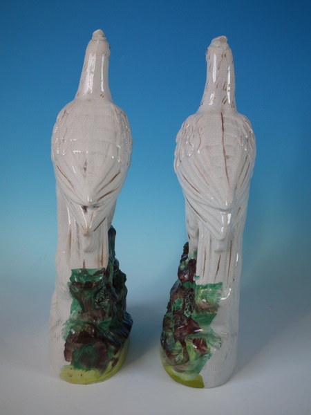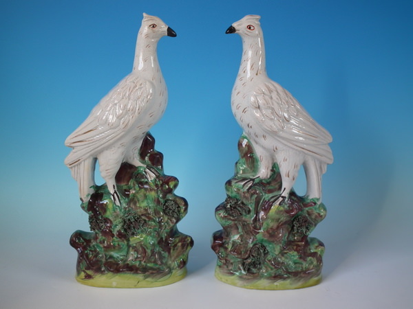 Pair Staffordshire bird on rocks figures