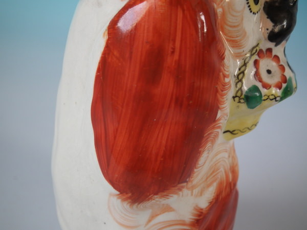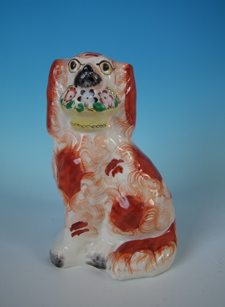 Staffordshire flower basket russet & white spaniel