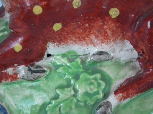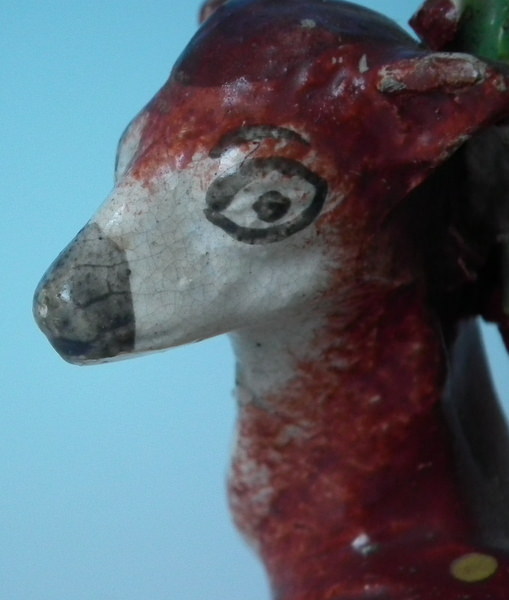 KILN EFFECT: shrinkage crack with associated firing hole under deer's stomach.