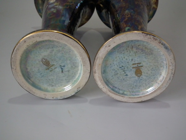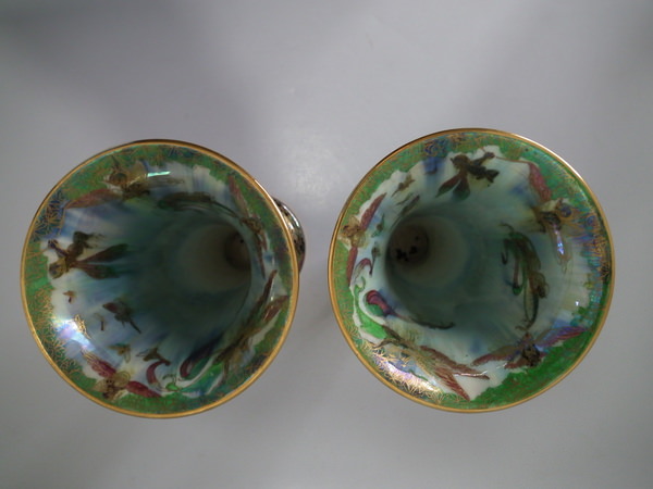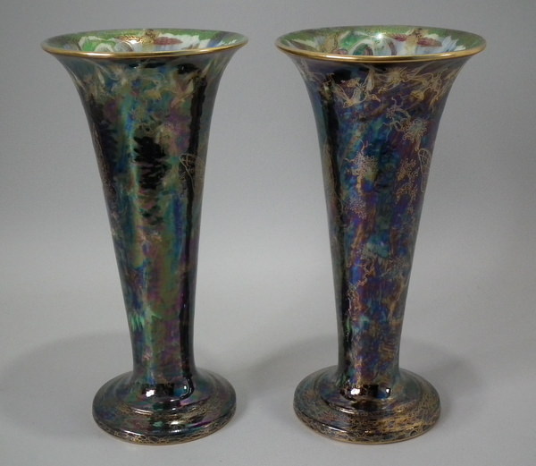 Pair Wedgwood Fairyland Lustre 'Butterfly Women' trumpet vases