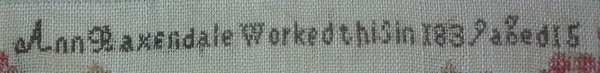 'Ann Baxendale Worked this in 1839 aged 15'.