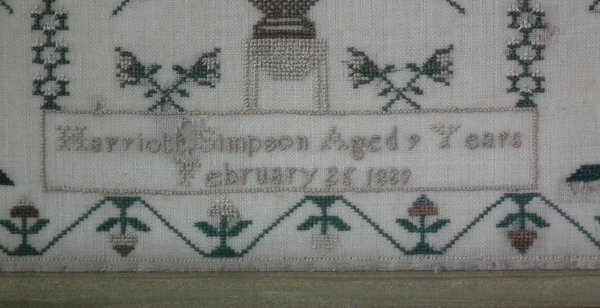 Signed and dated 'Harriott Simpson Aged 9 Years February 25 1839'.