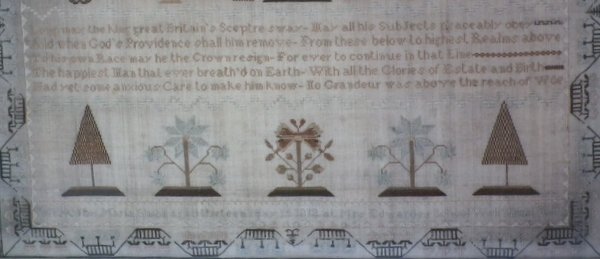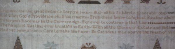 George III, dated 1812. 16.5ins by 21.75ins wide. 1812 Sampler by Maria Simon.