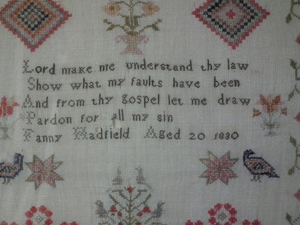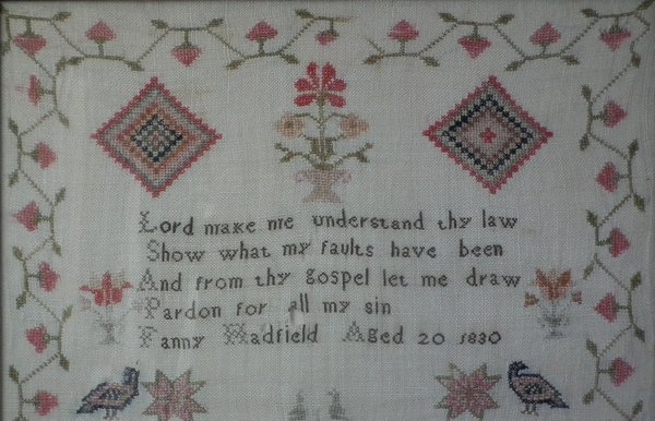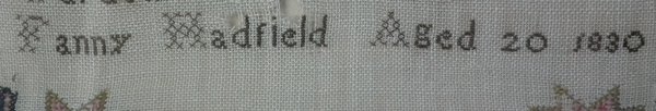 Signed and dated 'Fanny Hadfield Aged 20 1830'.