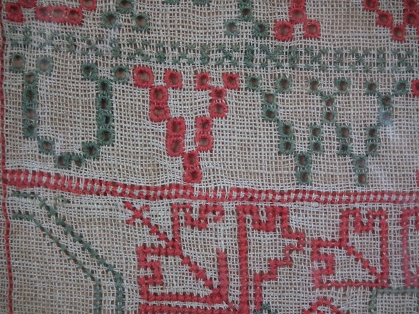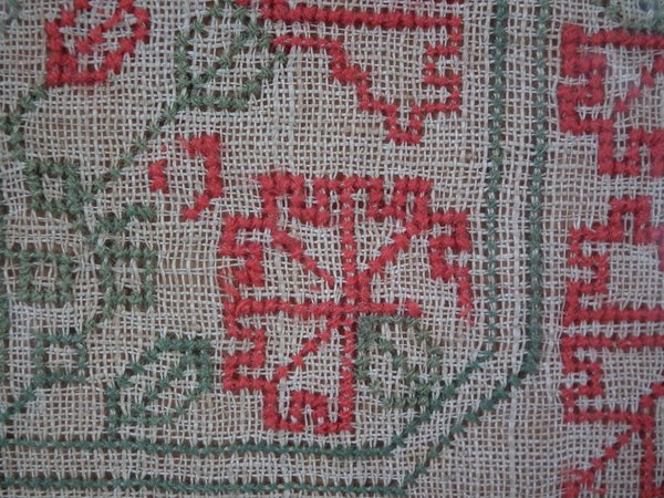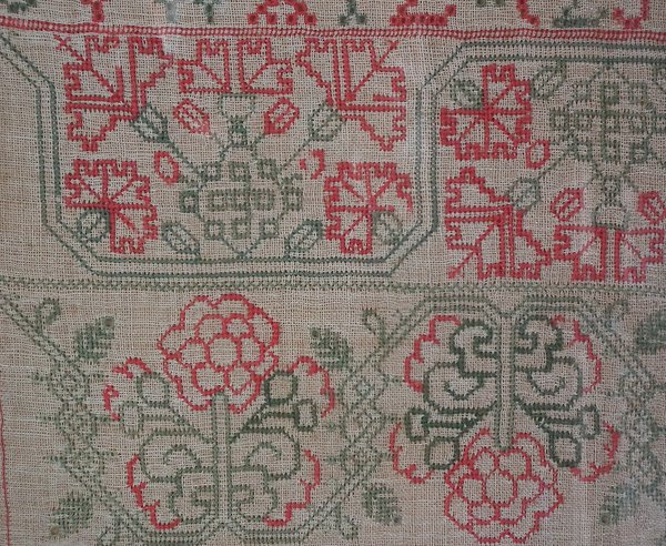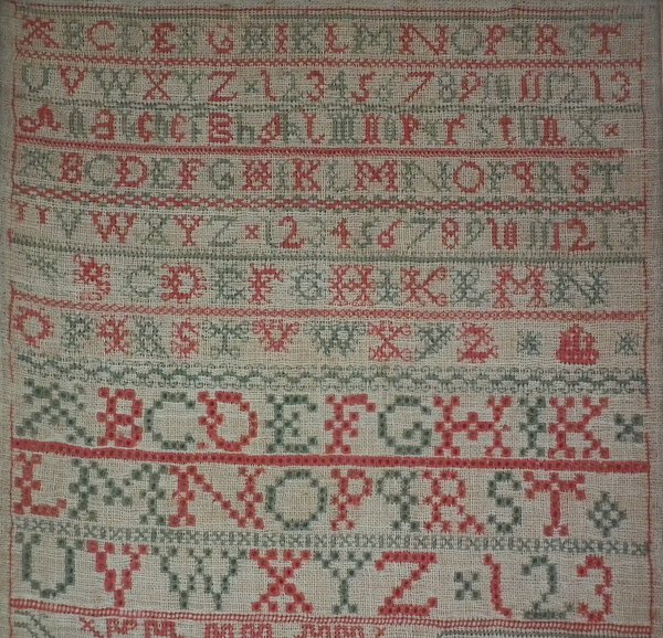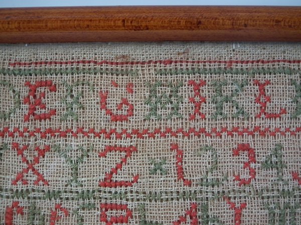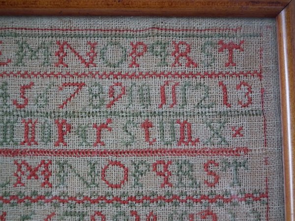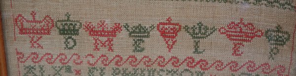 Minor stitch losses to the divider lines, motifs and letters/numbers.