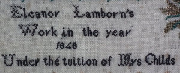 'Eleanor Lamborn's Work in the year 1848 Under the tuition of Mrs Childs'.