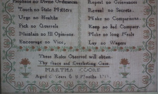 Signed and dated 'MARTHA COOKE Aged 8 years & 8 months 1811'.