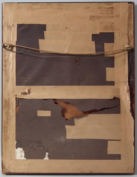 Colours green, cream, pale blue, dark brown, gold, white and black.