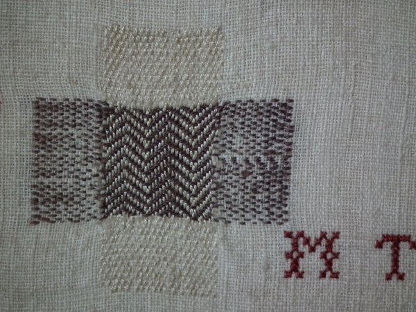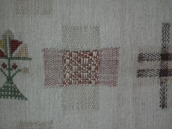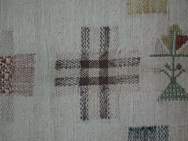 Comprises of darning panels worked in various different styles and patterns.