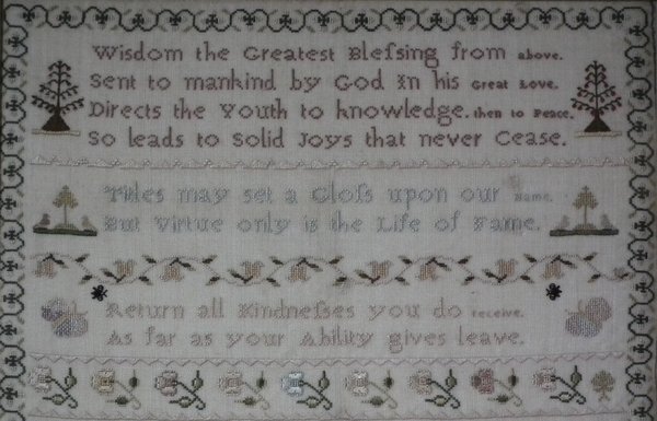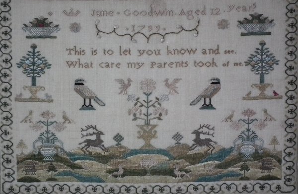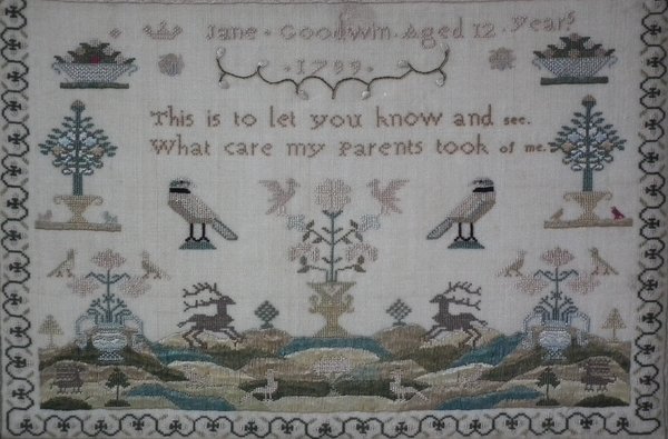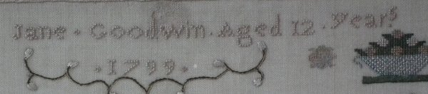 Signed and dated, 'Jane.Goodwin.Aged 12.Years.1799. '