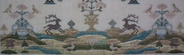 A wonderful set of motifs, some finely embroidered, including stags roaming on rolling hills,