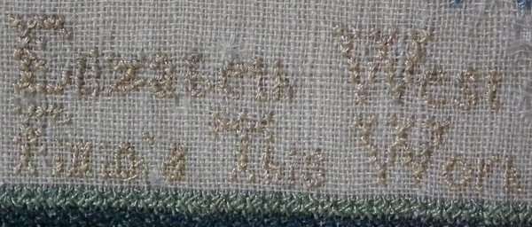 'Elizabeth West Finish'd This Work In the Tenth Year Of her Age ??' (age has been unpicked). Undated.