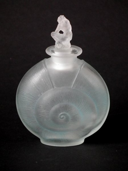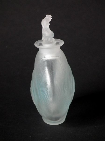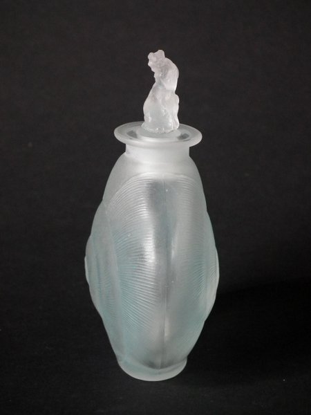 Rene Lalique Frosted with blue staining Glass 'Amphitrite' Perfume bottle.