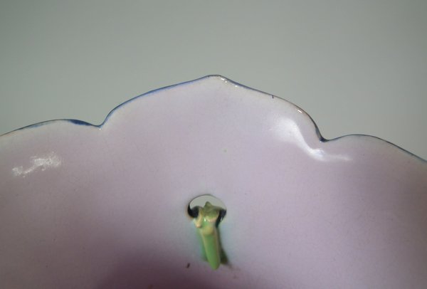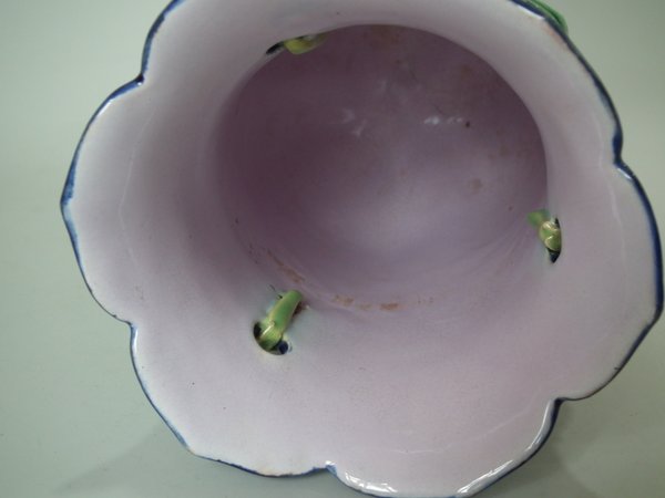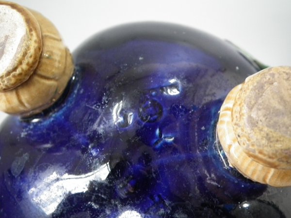 Three bulb effect feet to underside. Colouration: cobalt blue, green, pink, are predominant.