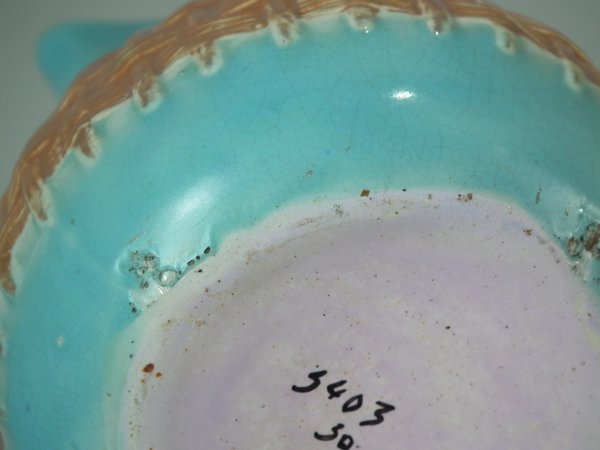 Creamer: Generally good. KILN EFFECTS: Glaze pops to underside.
