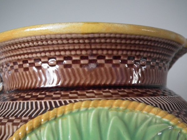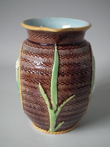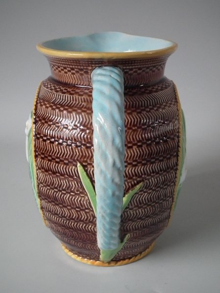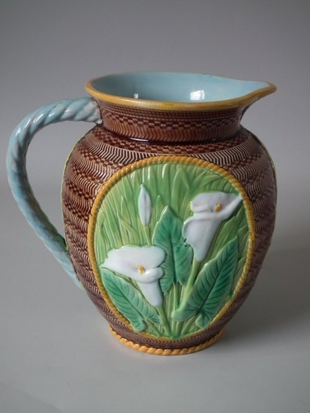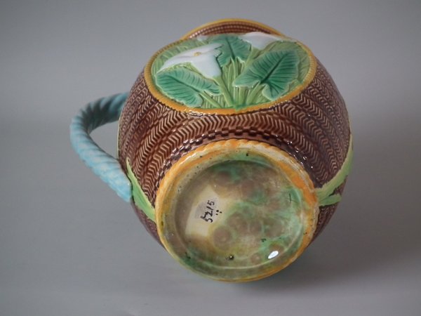 Victorian, circa 1870. 7.3ins high, 7.1ins wide, 4.7ins depth. George Jones Majolica jug/pitcher