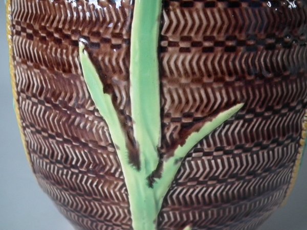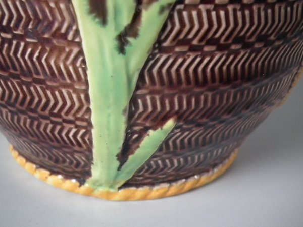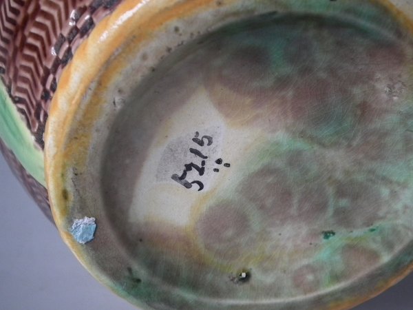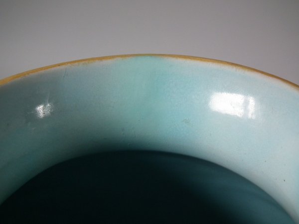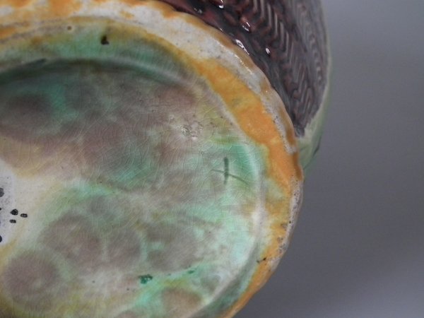 slight glaze run to the brown glaze.